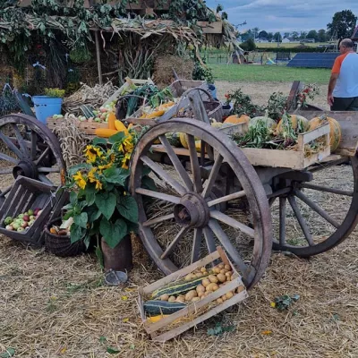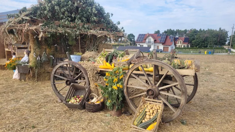 Odkryj witacz dożynkowy "Sierakowo" w gminie Kowalewo Pomorskie, ozdobiony symbolami rolnictwa.