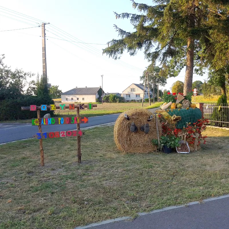 Odkryj witacz dożynkowy "Mlewo" w gminie Kowalewo Pomorskie, ozdobiony symbolami rolnictwa.