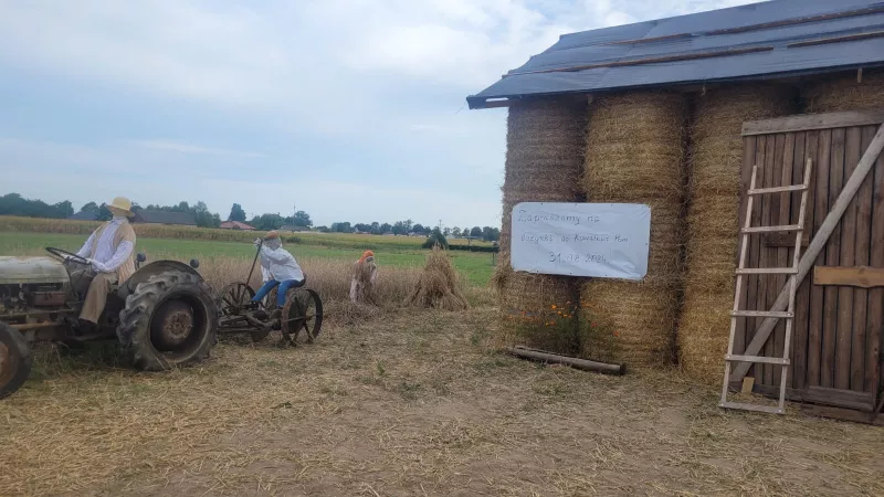 Odkryj witacz dożynkowy "Sierakowo" w gminie Kowalewo Pomorskie, ozdobiony symbolami rolnictwa.